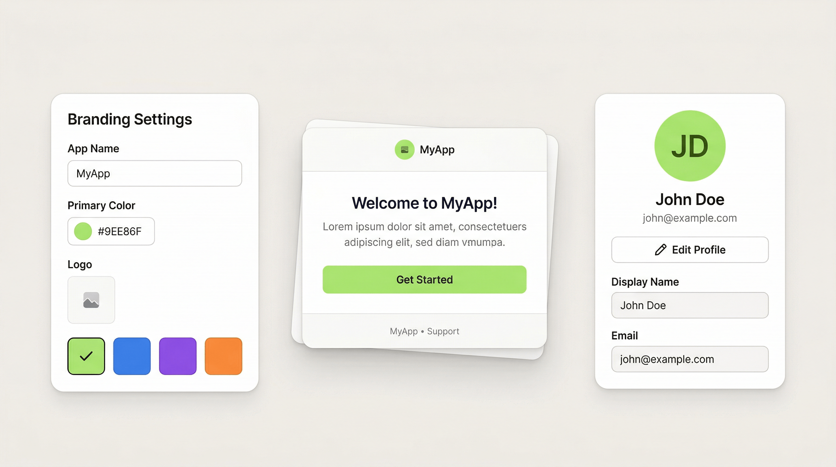 Make your authentication flow look like your brand — from sign-in forms to transactional emails to user profile pages.